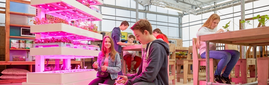 Bovendien zat me iets dwars. Kinderen de herkomst van eten uitleggen, is essentieel: het draagt bij aan een betere gezondheid en daarmee tot betere schoolprestaties, minder schooluitval en een gezondere levensstijl. Maar waarom leren we ze alleen hoe we van oudsher groenten verbouwen? We kunnen ze toch ook de huidige technieken leren? Technieken die, dankzij innovatief en onconventioneel denken, het tienvoudige per vierkante meter opleveren ten opzichte van klassieke manieren. Dan snappen ze ook waarom zoveel van de exotische producten in onze schappen van Nederlandse bodem kunnen komen. En creëren we bij hen besef van het water en de logistiek die we door techniek besparen.’